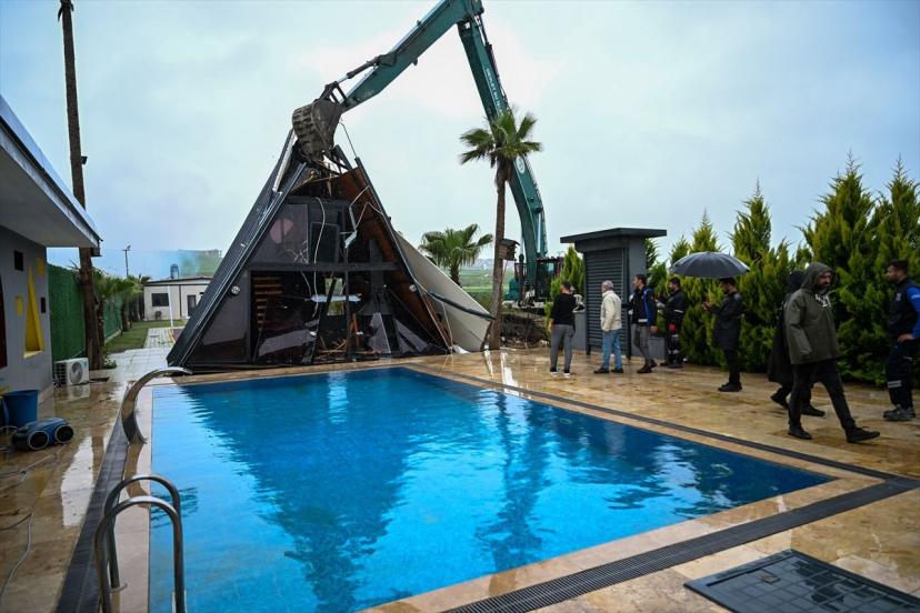 Adana'da göl kıyısındaki kaçak yapıların yıkımı devam ediyor