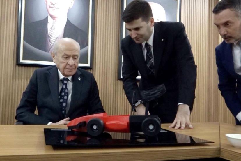 MHP Genel Başkanı Devlet Bahçeli, Ülkü Ocakları Eğitim ve Kültür Vakfı tarafından geliştirilen yerli yarış arabası prototiplerini inceledi ve araçlara 'Göktay-1' ve 'Göktay-2' isimlerini verdi.