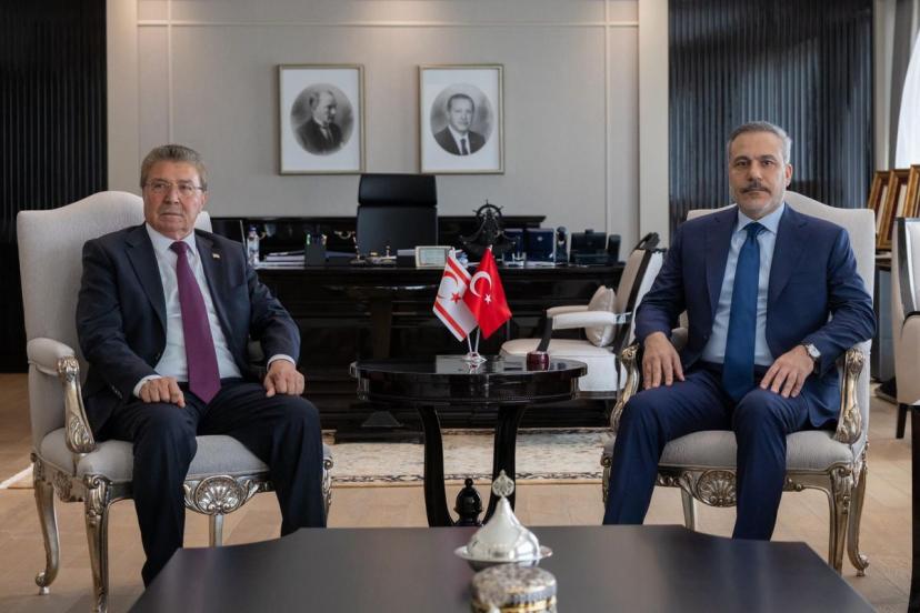 DIŞİŞLERİ Bakanı Hakan Fidan, Kuzey Kıbrıs Türk Cumhuriyeti (KKTC) Başbakanı Ünal Üstel ile bir araya geldi.