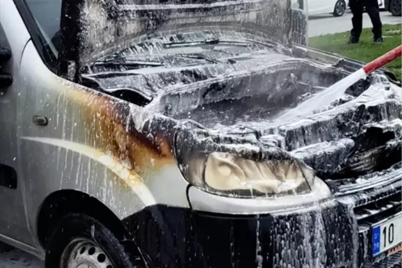 Balıkesir'in Edremit ilçesinde seyir halindeki hafif ticari aracın motor kısmında çıkan yangın, itfaiye ekipleri tarafından söndürüldü. Yangın sonrası araçta hasar meydana geldi.