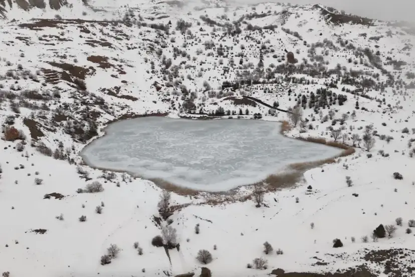 Erzincan'ın Kemah ilçesindeki Ardos Gölü, hava sıcaklıklarının sıfırın altına düşmesiyle buz tuttu. Göl, özellikle yaz aylarında piknikçilere ev sahipliği yapıyordu.