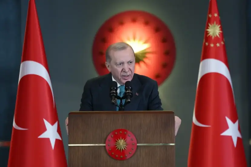 Ardından 'Terörsüz Türkiye' sürecine değinen Erdoğan, "Biz derdi olan bu ülkenin, bu milletin derdiyle dertlenen bir kadroyuz. Milletin takdiriyle ülkeyi yönetme görevini devraldığımız günden bu yana 86 milyonun müreffeh ve mutlu geleceği için canla başla çalışıyoruz. Gerek bölgemizde gerekse dünyada risk ve belirsizliklerin dalga dalga yayıldığı kritik bir dönemde iç cephemizi tahkim etmek amacıyla Cumhur İttifakı olarak tarihi bir adım attık. 'Terörsüz Türkiye' sürecini başlatarak milletimizin ayağına vurulan yarım asırlık kanlı prangayı parçalamak üzere sadece elimizi değil gövdemizi de taşın altına koyduk. Süreci sabote etmek isteyen karanlık odaklara rağmen 16 aydır hem büyük bir hassasiyetle hem de müstesna bir başarıyla süreci yönetiyoruz. İlgili kurumlarımız sahadaki görevlerini özenle ve koordinasyon içinde icra etmeyi sürdürüyor. Suriye'nin kuzeyindeki sorunun inşallah suhuletle çözülmesiyle birlikte önümüz daha da açılacaktır. Türkiye olarak bunun gerçekleşmesi için kardeşlik ve komşuluk hukuku çerçevesinde gereken desteği vermeye devam edeceğiz" dedi.
