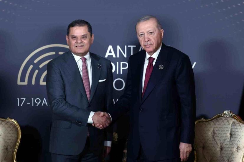 Cumhurbaşkanı Erdoğan, 5. Antalya Diplomasi Forumu (#ADF2026) için Türkiye'de bulunan Libya Milli Birlik Hükümeti Başbakanı Abdülhamid Dibeybe bir araya geldi. Cumhurbaşkanı Erdoğan, Türkiye'nin Libya'da, Libyalıların sahiplenmediği hiçbir girişimin başarılı olamayacağını sıklıkla vurguladığını, siyasi tasarrufların geniş tabanlı istişare ve diyalogla ilerletilmesinin önemli olduğunu, Türkiye'nin sürece desteğinin devam edeceğini söyledi.