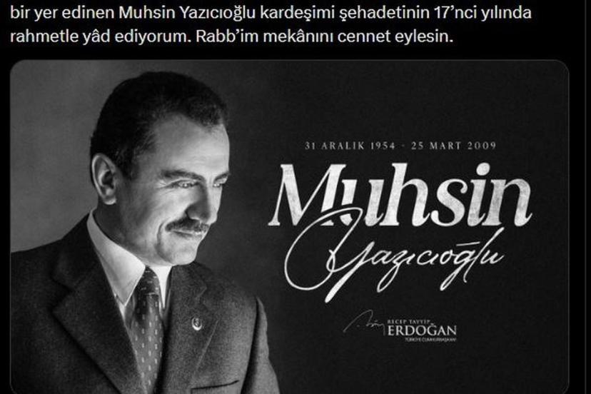 CUMHURBAŞKANI Recep Tayyip Erdoğan, BBP Kurucu Genel Başkanı Muhsin Yazıcıoğlu'nu vefatının 17'nci yıl dönümünde andı.