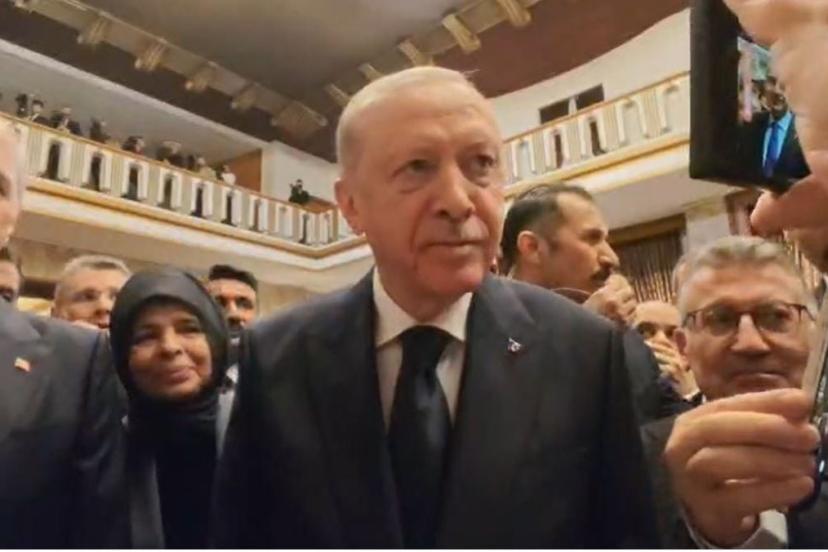Cumhurbaşkanı Recep Tayyip Erdoğan, TBMM Şeref Holünde düzenlenen 23 Nisan Resepsiyonu'na katıldı. Cumhurbaşkanı Erdoğan'ı, TBMM Başkanı Numan Kurtulmuş, kapıda karşıladı. Erdoğan, resepsiyonda davetlilerle bir süre sohbet edip, fotoğraf çektirdi. Ardından gazetecilerin sorularını yanıtlayan Erdoğan, 'Özgür Özel ile görüşmeyi düşünüyor musunuz?' sorusuna, "Böyle soru sorulur mu? Şu anda ben iktidar partisiyim, ana muhalefet partisi görüşürüz, görüşmeyiz bir defa bizim kitabımızda yok yok. Tabii görüşürüz, niye görüşmeyelim" cevabını verdi.