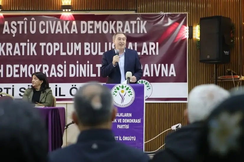 DEM Parti Eş Genel Başkanı Tuncer Bakırhan, Siirt'te düzenlenen etkinlikte Milli Dayanışma, Kardeşlik ve Demokrasi Komisyonu raporuna değinerek, demokratikleşmenin önemine vurgu yaptı.