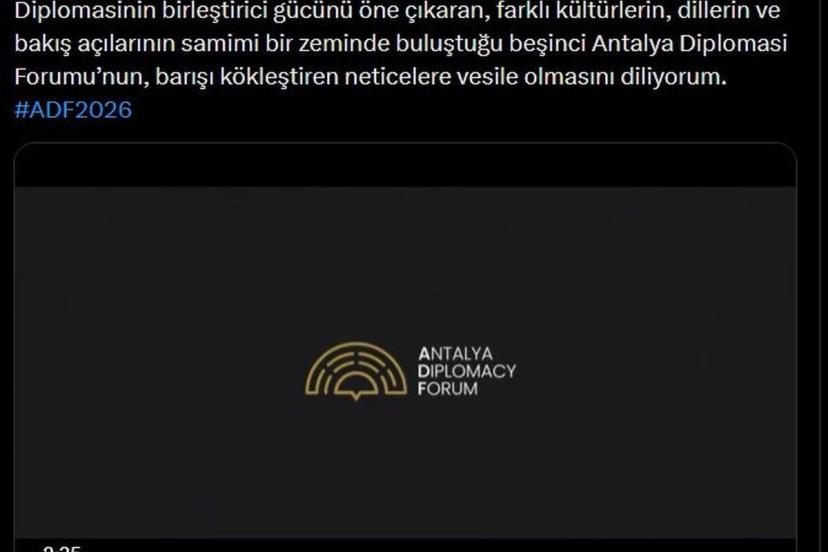 Emine Erdoğan'dan 5'inci Antalya Diplomasi Forumu'na ilişkin paylaşım