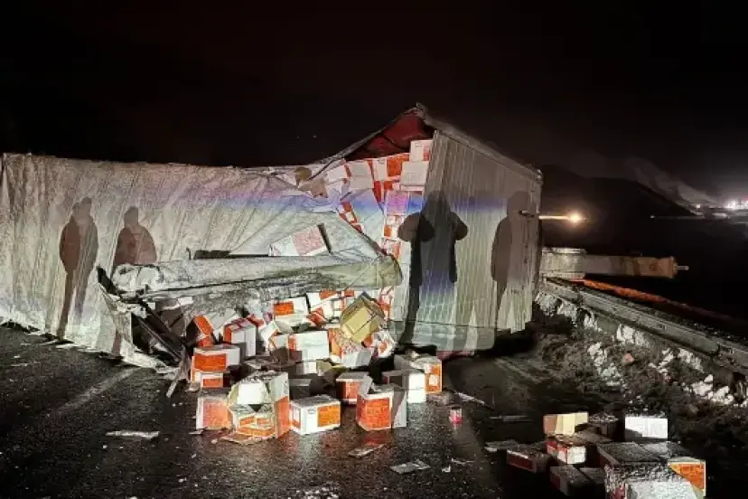 Devrilen tırın kaldırılması için karayolları ve polis ekipleri çalışma başlattı.