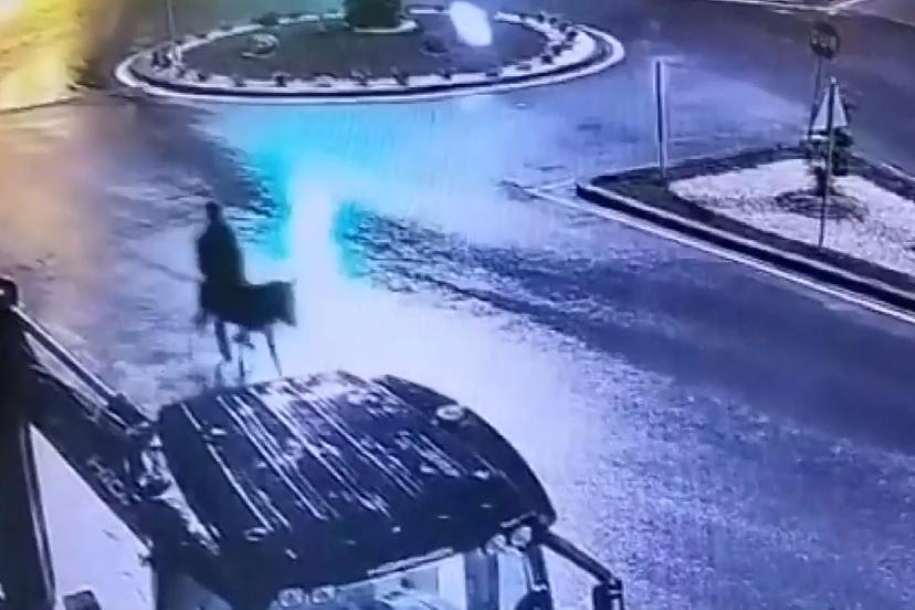 Olaya ait ulaşılan güvenlik kamerası kayıtlarında, zanlının forkliftle kuyumcunun kepenk ve camlarını kırarak içeri girdiği, altınları aldıktan sonra eşekle olay yerinden kaçtığı görülüyor.