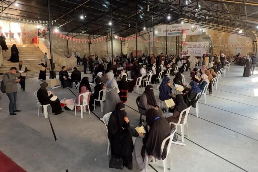 Gazze kentindeki camide gerçekleştirilen hatim programında aralarında sağlık çalışanları, engelliler, savaş yaralıları ve yaşlıların da bulunduğu 120 kişi Kur’an-ı Kerim'i tek oturumda hatmetti.