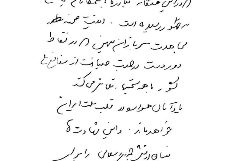 İran, İsrail'in öldüğünü iddia ettiği İran Ulusal Güvenlik Yüksek Konseyi Genel Sekreteri Ali Laricani'nin el yazıyla hazırladığı mesajını paylaştı. - TAHRAN