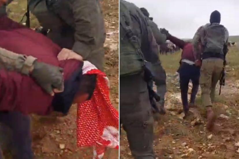 İsrail askerleri, zorla araziye giren Filistin topraklarını gasbeden İsrailliler yerine, Filistinli çiftçi ve oğulları Luey ve Leys'i gözaltına aldı.