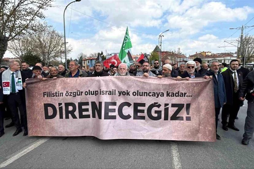Konya'da gerçekleştirilen yürüyüşte vatandaşlar, Filistin halkına destek vererek İsrail'i protesto etti. Konya Sivil Toplum Kuruluşları Platformu tarafından düzenlenen etkinlikte, 'Siyonist ve Emperyalist Çeteye Karşı Kardeşine Sahip Çık, Kutsalına Sahip Çık' sloganları atıldı.