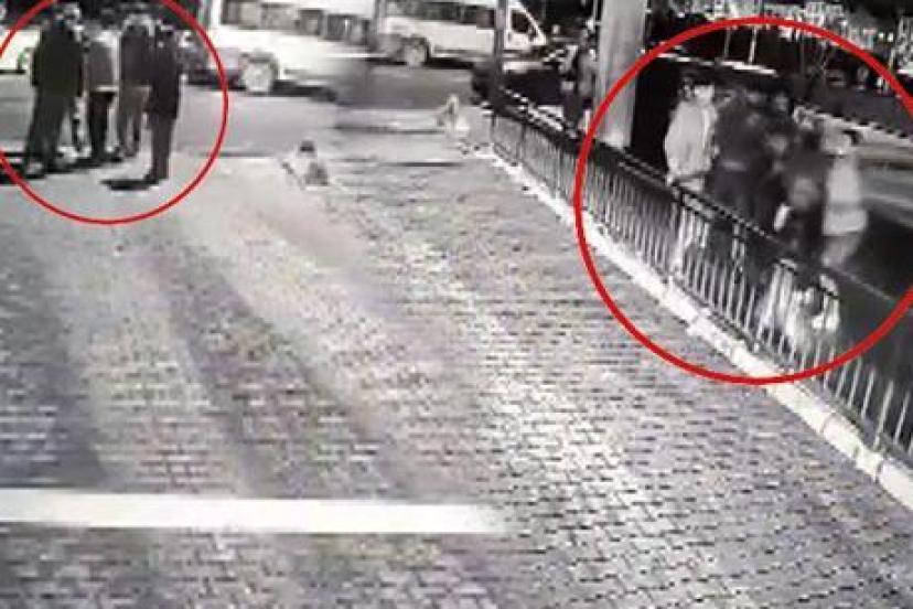 Öte yandan, polis memurunun kalabalık bir grup tarafından darbedildiği, eşinin ise tokat atılarak yere düşürüldüğü anlar çevredeki bir iş yerinin güvenlik kamerasına yansıdı.