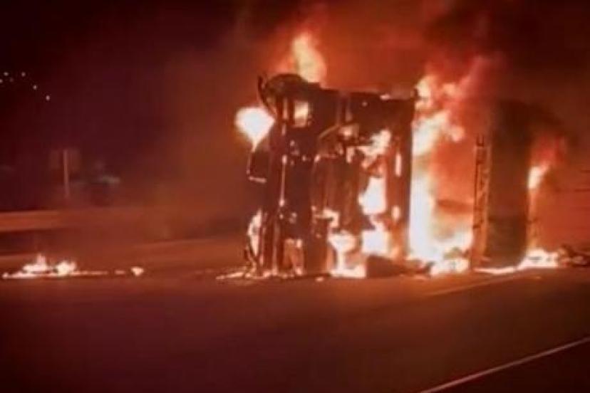 Yangında TIR'ın çekici bölümü tamamen yanarken, dorsesinde de hasar oluştu. Jandarma, kazayla ilgili soruşturma başlattı.