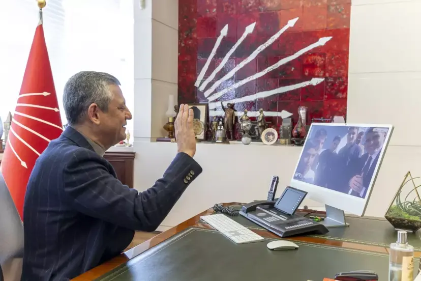 CHP Genel Başkanı Özgür Özel, Adana'nın Seyhan ilçesindeki Büyüksaat Ortaokulu'nda, fırtına sırasında düşmek üzere olan Atatürk büstünü koruyan öğrencilerle çevrim içi görüştü.