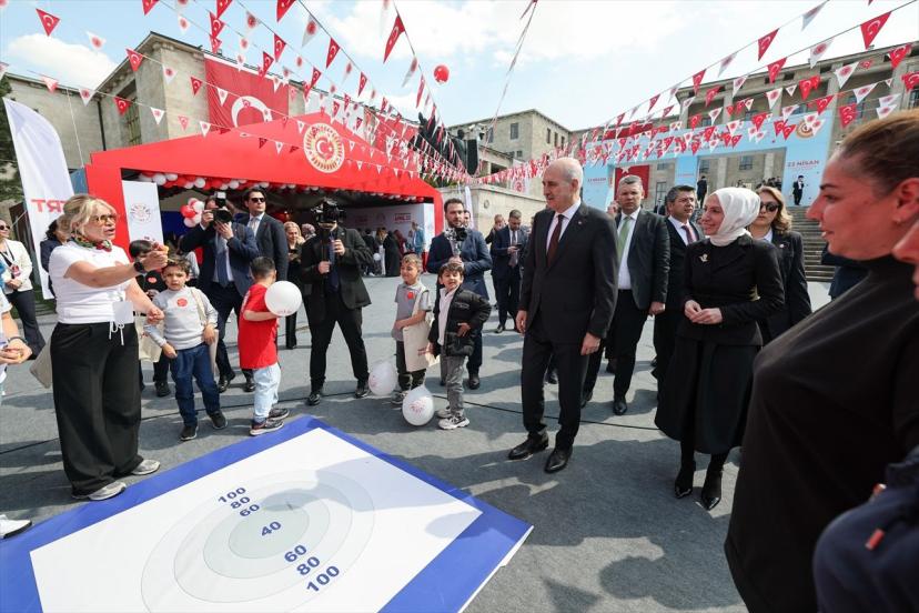 TBMM Başkanı Numan Kurtulmuş, 23 Nisan Ulusal Egemenlik ve Çocuk Bayramı ile TBMM'nin açılışının 106. yıl dönümü kutlamaları kapsamında "Meclis Bahçesi Çocuk Bahçesi" etkinlik alanını ziyaret etti.