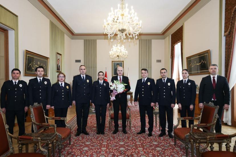 TÜRKİYE Büyük Millet Meclisi (TBMM) Başkanı Numan Kurtulmuş, Türk Polis Teşkilatının 181'inci kuruluş yıl dönümü dolayısıyla TBMM Koruma Daire Başkanı Murat Çelik ve beraberindeki emniyet mensuplarını kabul etti.